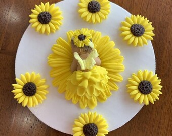 1 X Sunflower Cake Topper 6 X Sunflower Cupcake Toppers Sunflower Theme Party Decoration Sunflower Cake Decorations For Baby Shower Glitter Sunflower Happy Birthday Cake Topper For 1st Girl Boy Sunflower from images-na.ssl-images-amazon.com So now, it's time to pick out the coolest, most creative cake ideas for you to get inspired by. The following baby shower cake/cupcake ideas and trends are popular for this year. Baby shoes and rattle are airbrushed in pearl shimmer. Now it is time to organize your baby shower and celebrate the baby's birth with all your friends and family members. See more ideas about baby shower, sunflower baby showers, baby shower themes. We've done the tough stuff for you! See more ideas about sunflower party, sunflower baby showers, sunflower birthday parties. At a baby shower party, the cake should reflect the parents' style, the colors in the other decorations, the gender of the baby if known, or the date many of the cake ideas are tall with multiple tiers which makes a visual statement.
